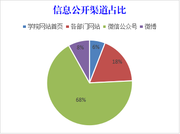 进一步完善学院门户网站、校内OA网络平台、微信公众号、宣传栏,充分利用QQ群、微博、微信等新媒体,丰富拓宽信息公开渠道。通过定期调整、更新学校主页、校内宣传栏、简报等方式向社会公众、师生员工公开学校基本信息;同时灵活运用校内LED电子显示屏、信息公示栏、广播等载体,将教学、科研、管理与服务等方面内容,按照规定程序公开。